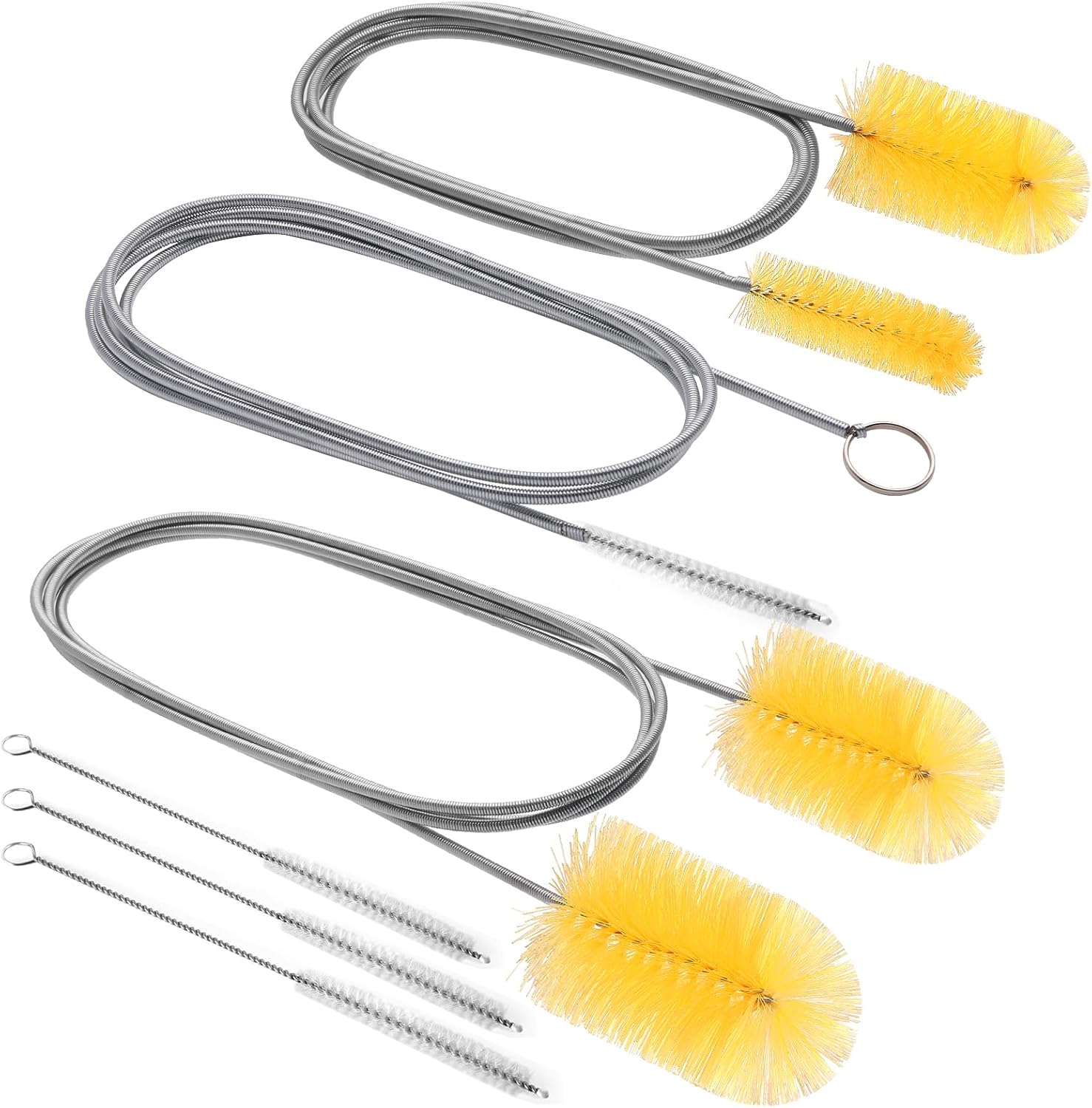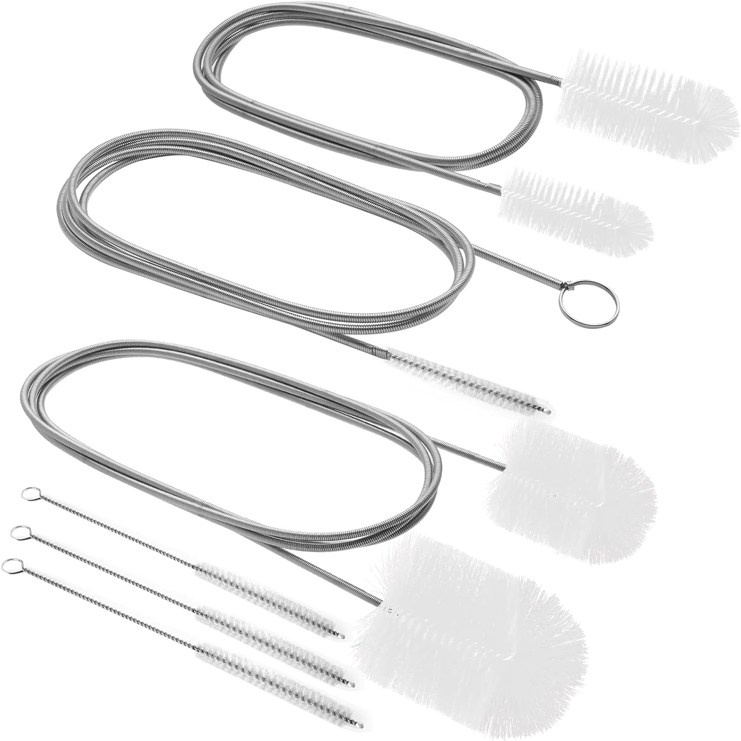 6-Piece Flexible Drain Cleaning Brush Set – Keep Your Pipes Clog-Free & Flowing Smoothly! This drain cleaner tool set is designed for deep cleaning various drainage systems, including kitchen sinks, bathroom drains, shower pipes, aquarium filters, refrigerator drain pipes, and water dispenser tubes. The durable nylon bristles effectively remove hair, food residue, and buildup without scratching plastic or metal surfaces. With six different brushes supporting 8 pipe diameters, this long brushes for cleaning set includes: ✔ 78-inch double-ended drain brush (1.57" & 2.17" brush heads) ✔ 63-inch double-ended pipe cleaner brush (0.59" & 1.18" brush heads) ✔ 59-inch tube cleaning brush (0.39" brush head) ✔ Three 9.45-inch sink drain brushes for cleaning (0.24", 0.32", & 0.47" brush heads) The flexible drain brush design allows easy maneuvering through P-traps, U-bends, and other curved pipes. Some brushes feature a spiral brush head to catch and remove stubborn debris. Easy to clean & reusable—simply rinse with hot water. The ergonomic pipe brush handle ensures a comfortable grip, while select models feature a rotating brush head for improved efficiency. Perfect for homeowners, plumbers, and DIY enthusiasts, this drain brush cleaner set is a must-have for keeping your plumbing system running smoothly!
