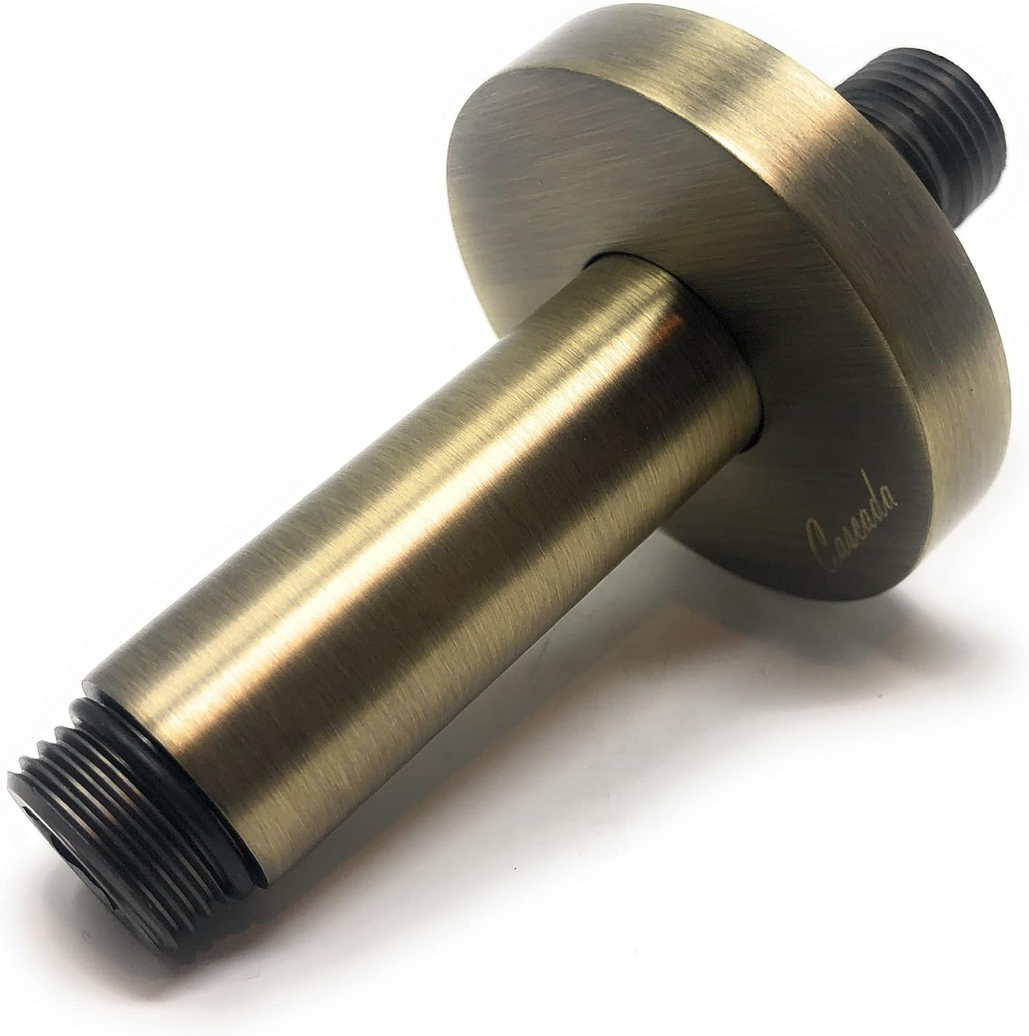 For bathrooms with restricted ceiling heights, this 16 Inch ceiling-mount shower arm allows you to install a Modern Round Rain or Square Rain showerhead lower in your shower for a more gentle rainfall.Product Features: Fully covered limited lifetime warrantyConstructed from solid brassSuperior finishing process - finish covered under lifetime warrantyShower Arm Length: 16 InchAdjustable wall flange is included1/2" threaded male inlet,1/2" threaded male outletCeiling mounted shower arm design for rain-shower experienceDesigned for use with shower heads with standard 1/2" female connections.