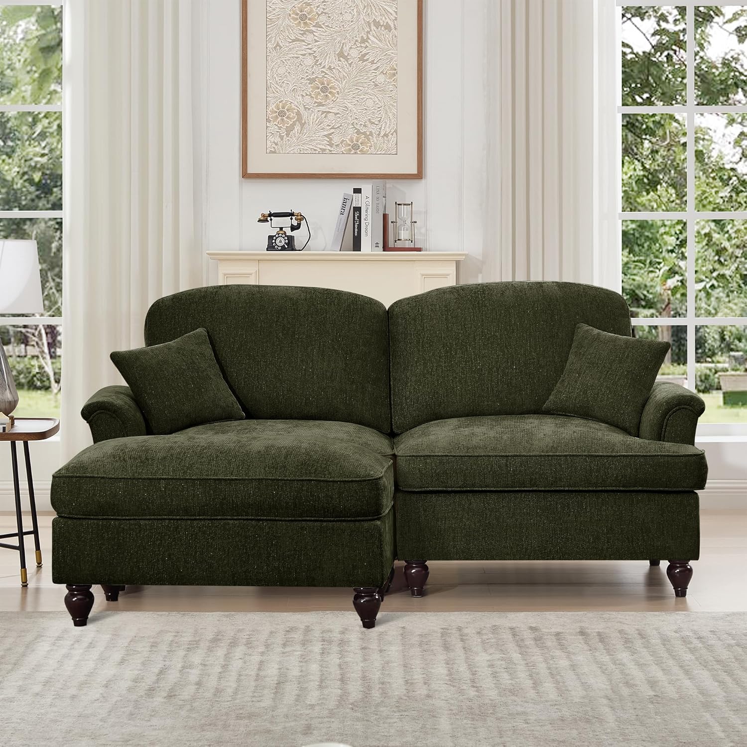 Transform your living space with this elegant medieval-inspired oversized sofa that seamlessly blends comfort with versatile style. The sofa features graceful flared armrests, plush cushioning, and distinctive spindle legs that add a touch of classic charm. The detachable ruffled pleated skirt offers two distinct looks - remove it for a contemporary feel or keep it attached for a more traditional aesthetic. Upholstered in premium chenille fabric with subtle silver threading, this piece provides both durability and sophistication. The segmented backrest design and high-density foam padding naturally conform to your body's curves, while the included throw pillows offer additional support and styling options. this sofa comfortably seats 2-4 people. The modular design allows for multiple configurations, making it perfect for both spacious living rooms and cozy apartments. The medium-firm cushioning strikes an ideal balance between support and comfort, while the cream-colored upholstery easily coordinates with various decor styles.