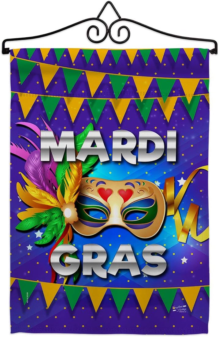 Mardi Gras Beautiful Mini Garden FlagAngeleno Heritage have variety of Garden Flag for all occasions. Uniquely design for hanging indoor or outdoor use. We are committed to offering you exceptional values. Our customers enjoy displaying our Garden Flag for longer periods. Specification: Theme: Mardi Gras Size: Garden Flag 13" x 18.5" Print: Double-Sided Readable: Readable Both Sides Material: Weather Resistant Double Burlap Stitching: Double Stitched Display: Vertical Hang Type: Sleeve Artist: Amerie Robbins Special Features: Origin: Made In USAPackage Include: 1 pc x Garden Flag 13" x 18.5" Package Decorative FlagsFor more than a decade, we’ve been dedicated to manufacturing flags with no comparison in quality and beautiful designs. Our flags are made with our Pro Guard material that is soft to the touch and designs can be read correctly on the flag. A feature that our customers will love. We are committed to using eco-friendly inks that won’t leave a foot print in our environment. MPN: AH-MG-G-137347-IP-DB-D-US20-AH 37347 35347