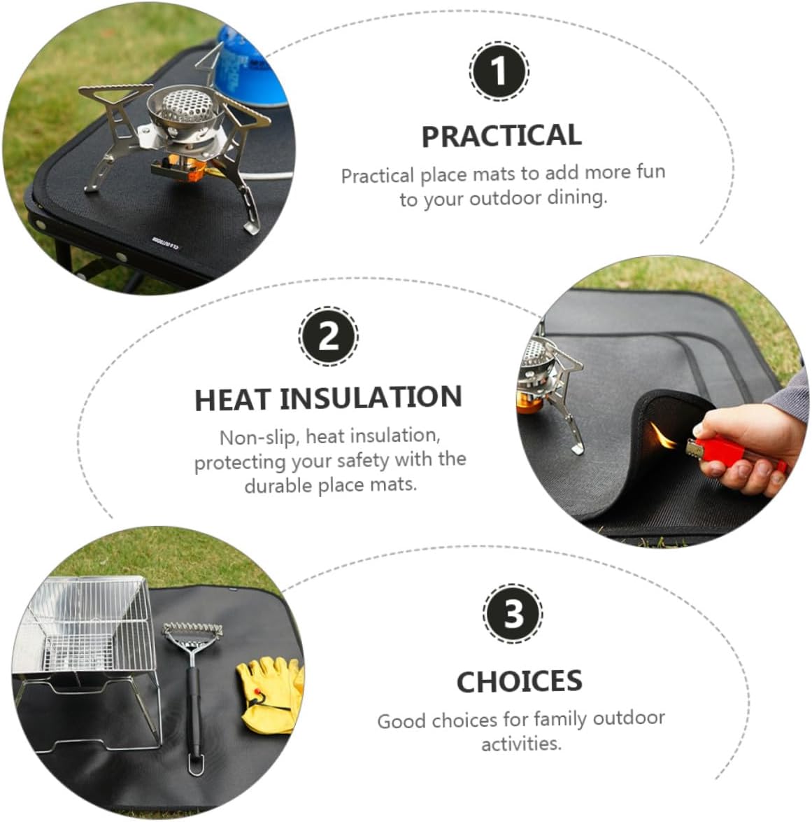 Package Include 1 x fireproof mat Characteristics - Size: About 80.00X75.00X0.30cm/31.44X29.48X0.12inch Fire Resistance Cloth -Product Info:Fireproof cloth heat insulation pad - Material: Silicone coated glass fiber cloth Insulation Blanket - Color: Black Barbecue Insulation Pad - It can bring you barbecue environment, and you can have fun with your families or your friends Fireproof Mat. - Made of materials, durable and safe for a long time use BBQ Fireproof Blanket. - Can create , effective, heat-retardant barrier from high heat sources Fire Resistance Blanket. - and , performance Fire Resistance Mat. - Bring it with you to camping, BBQ, convenient to use Insulation Mat.Goods InformationBarbecue Insulation Pad It is perfect for outdoor BBQ use in order not to cause fire disaster.Blanket material can ensure its durability and practicability.Insulation Blanket This item is a fireproof pad, manufactured with premium silicone coated glass fibre cloth materials, so that it