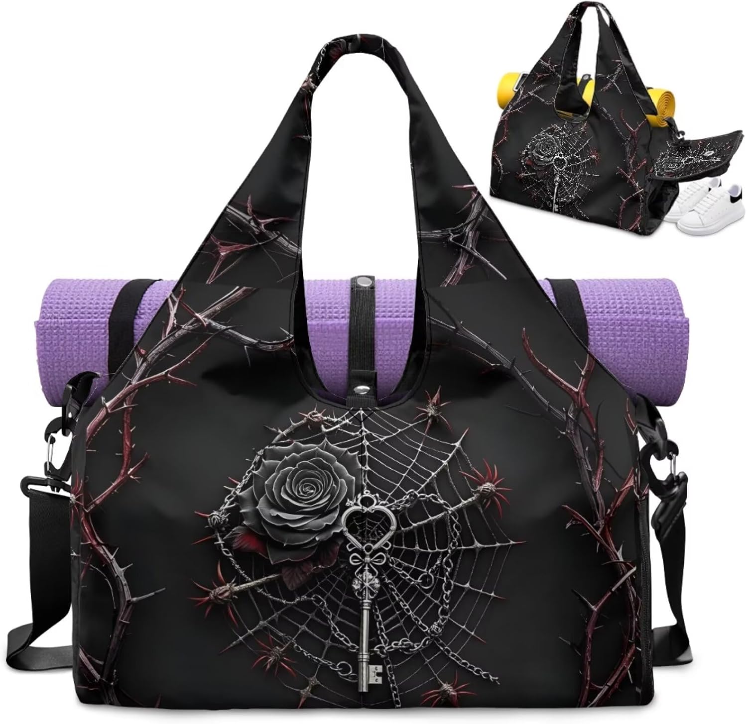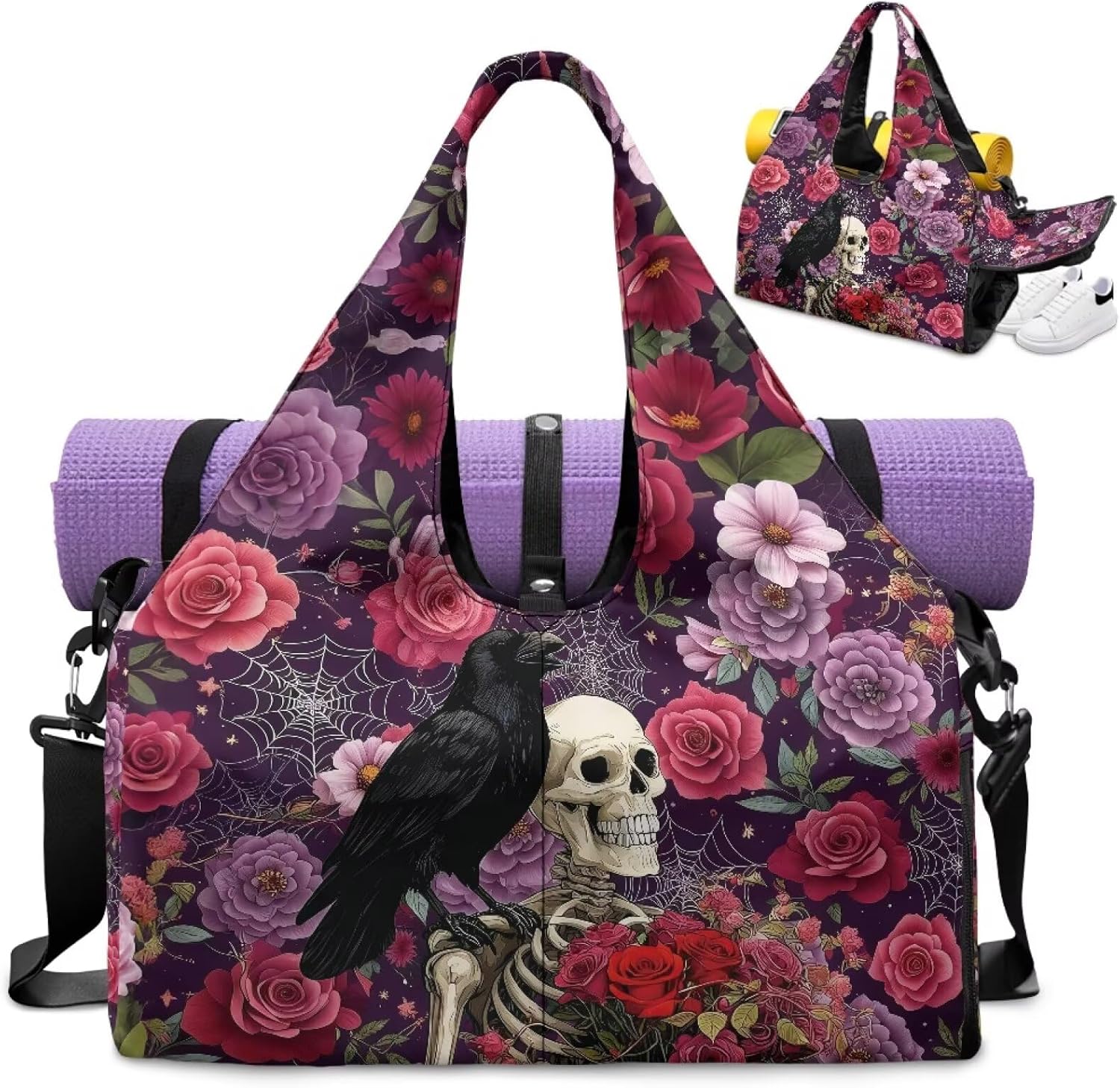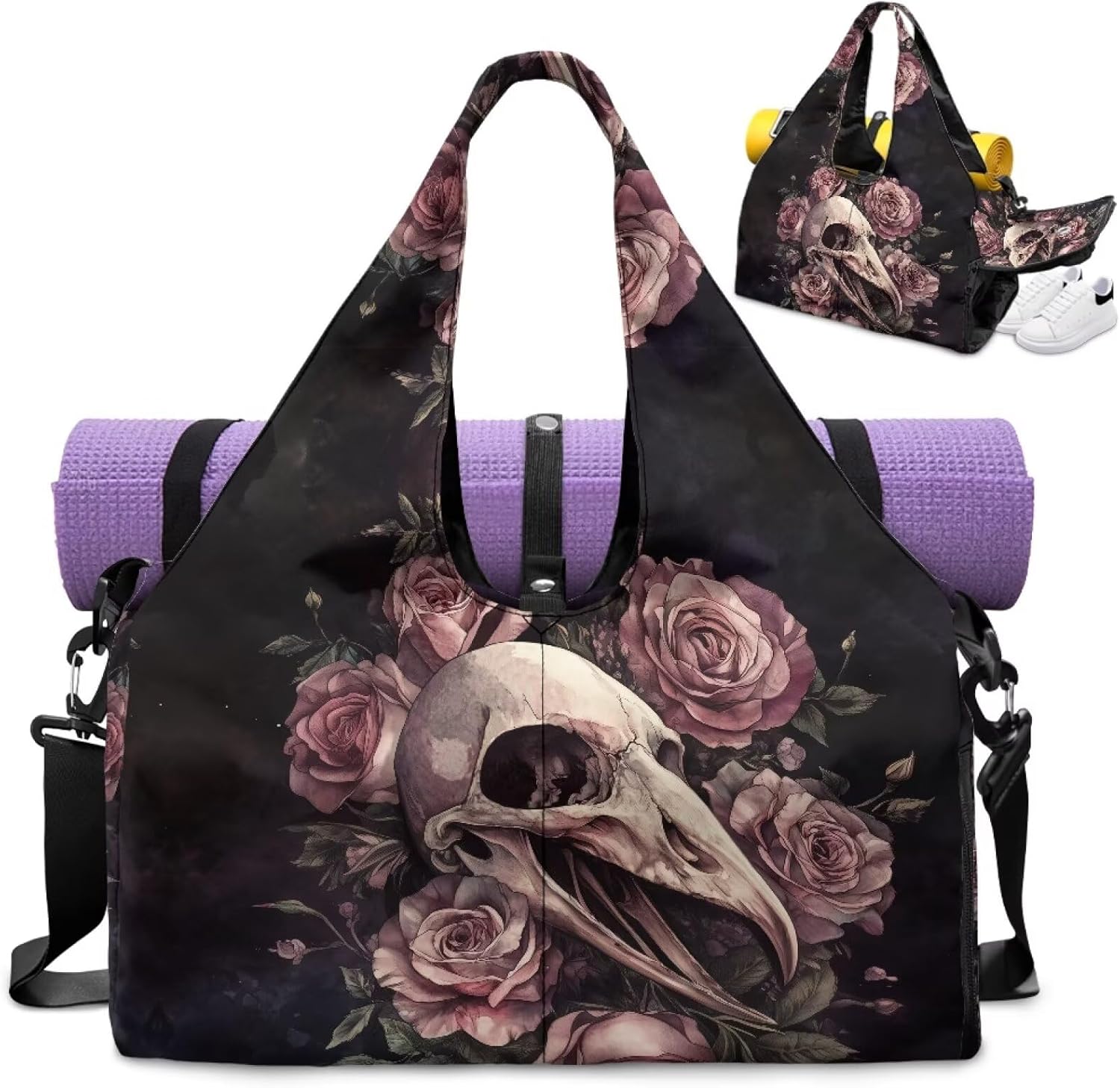 Welcome to JOLAMIREL JOLAMIREL stands against mediocrity and is a symbol of an elegant and practical attitude towards life. Yoga Gym Bag for Women Convenient & Functional Design Size: This women's yoga gym bag measures 17.7 * 8.6 * 9.8 inches, Spacious and lightweight design. Material: Premium polyester: durable and scratch-resistant. Versatile & Convenient ✓Large Capacity: This yoga gym bag has a main pocket that can hold clothes, towels, water bottles, and more. There are also multiple pockets inside for storing keys, cards, and other small items. ✓ Two ways of carrying: Adjustable shoulder straps, the length can be adjusted according to personal needs, and also carry it by hand. Everyday Exercise & Travel-Ready Yoga Mat Holder - Hands Free: You can directly fix the yoga mat on this bag, freeing your hands to look at your phone or drink water. Independent Shoe Compartment: This bag is specially designed with a separate shoe cabinet on the side, where shoes can be placed to separate them from other items and keep them clean. Multi-Functional: With this bag on your back, you no longer need to carry extra yoga mat bags or shoe bags. One bag can meet all your needs, elegant and worry free. Practical & Convenient: When staying overnight at a friend's house, it is called a 'portable overnight bag'. The next day, you can go directly to yoga class with your back. Various Occasions: Perfect for workout, yoga, beach, swim, travel or weekend trips. Uniquely Yours Choose from designs: 1000+ patterns — classic oil painting, Gothic skull, or floral. Visit the store homepage: Personalization available via the 'Customise' option for an special Style. Gift Thoughtful & practical for moms, friends or partners. Perfect for birthdays, Mother’s Day, Christmas, or "just because"moments, it can convey your love and affection.