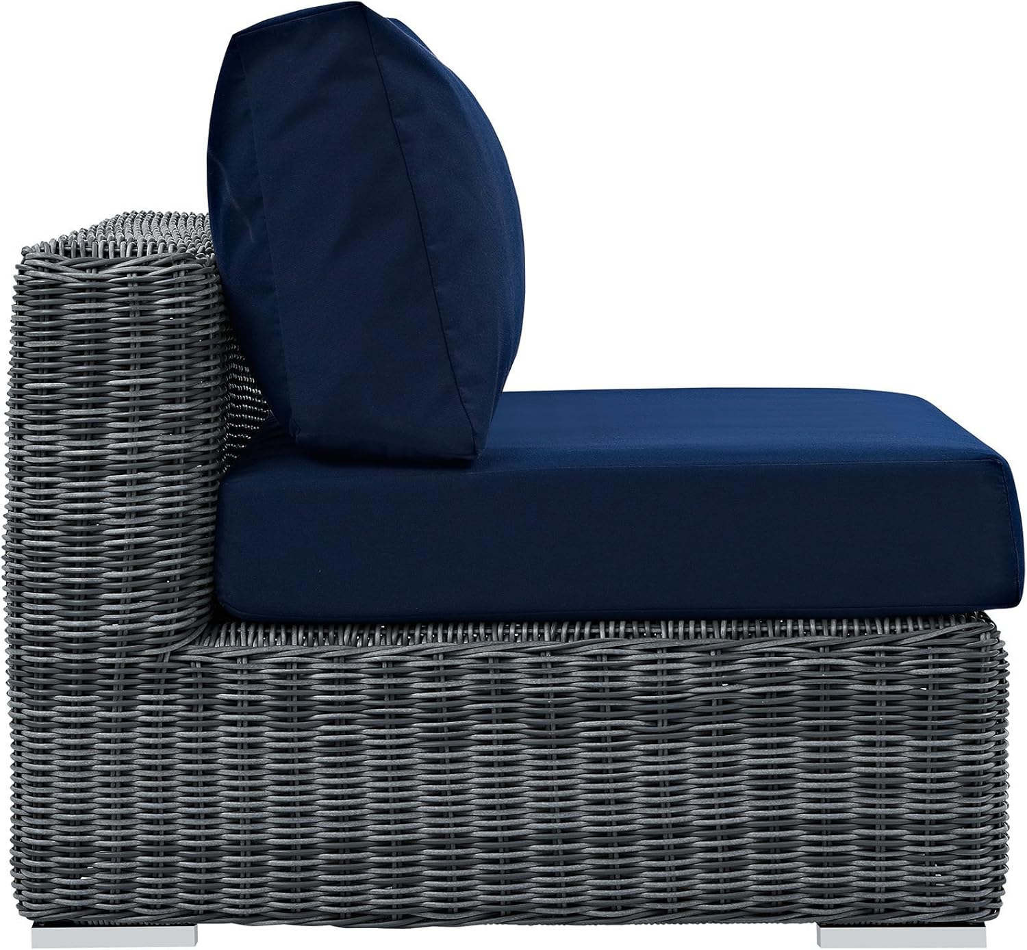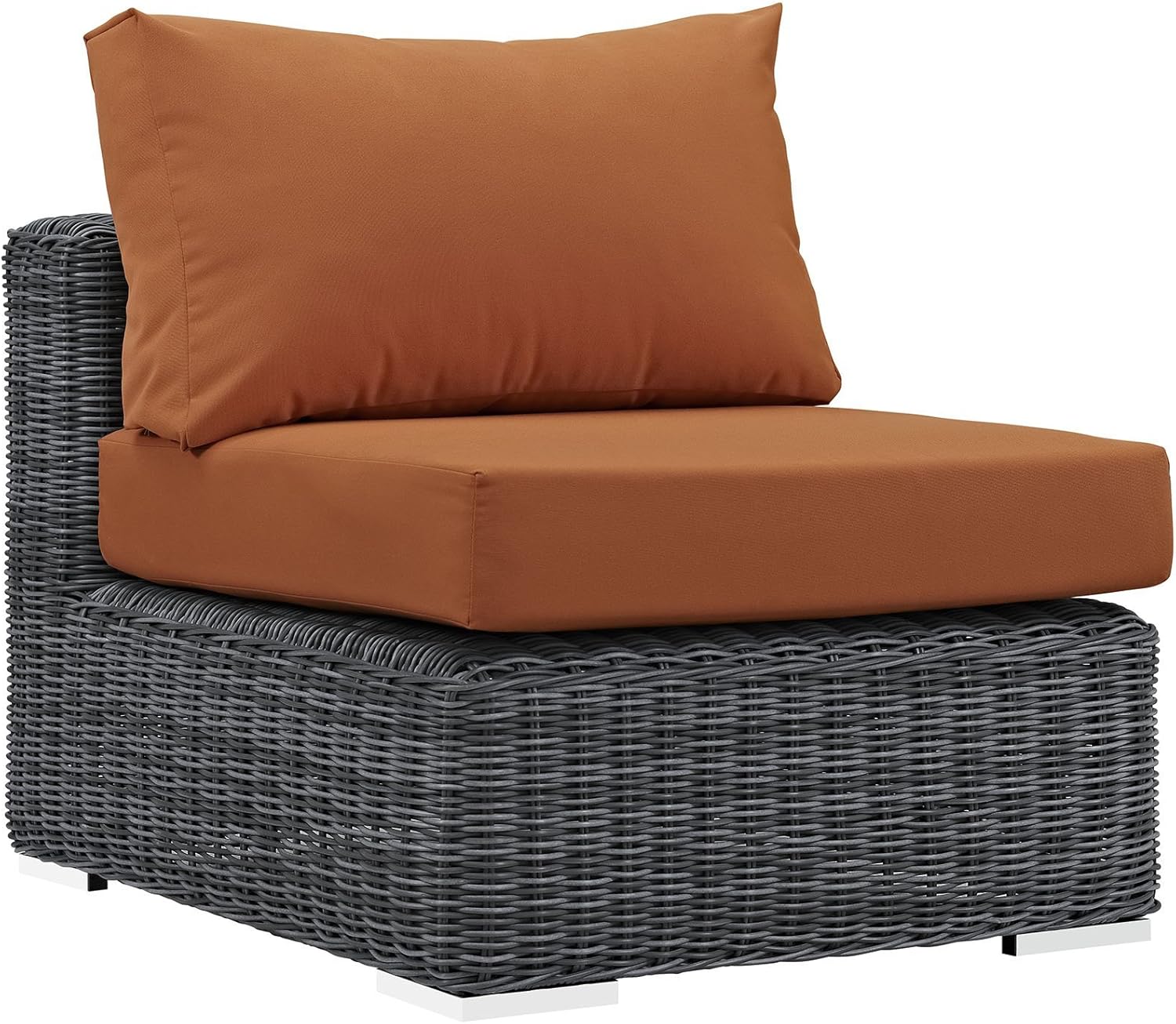 Experience the outdoors with exceptional comfort and quality. Summon Outdoor Patio Armless Sectional Sofa Chair offers an exquisite two-tone synthetic rattan weave, plush all-weather cushions with industry-leading Sunbrella fabric, UV protection, and a sturdy powder-coated aluminum frame. Featuring an elegant modern look, Summon Patio Armless Sofa Chair is part of an avant-garde outdoor sectional series well-equipped for enhancing patio, backyard, or poolside gatherings. This installment of the series is an Outdoor Patio Armless Sofa Chair.