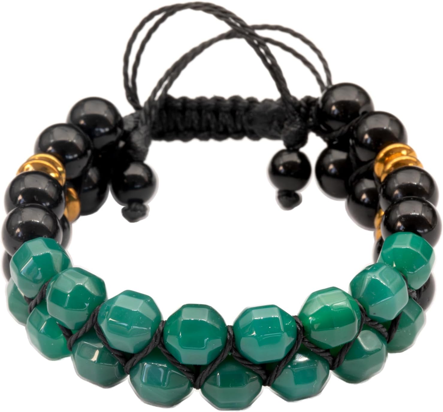 Product Description-ALL THE PRODUCTS AT ELISAJEWELRYART ARE HANDMADE AND MADE WITH NATURAL BEADS. -ABOUT THIS NATURAL GEMSTONE NECKLACE COLLECTIONNatural gemstones have been valued throughout history for their beauty, symbolism, and connection to balance and intention. Natural stones are chosen not only for their visual appeal but also for the meaning and character they represent, making each piece both personal and timeless.This bracelet collection brings together natural gemstones in a refined double row macrame design, allowing each stone to express its own unique texture, color, and symbolic presence. The combination of natural beads with grounding elements creates a balanced and versatile accessory suitable for everyday wear.Bead Size: 8mmNatural Gemstone BeadsNatural Black Onyx BeadsNatural Hematite SpacersStrong Waxed Macrame CordGift PouchCardboard Jewelry Box This adjustable bracelet made to order in different sizes. Please choose your requested wrist size from the drop-down menu above.Small Size: 6" - 7.5" [15.2 cm -19.1 cm]Medium Size : 7" - 8.5" [17.8 cm - 21.6 cm]We recommend the following to care for your jewellery: – Avoid contact with all water, perfumes, bleaches and liquids. Every piece made from materials and objects found in nature. Some of these, like the gemstones, metals, cotton thread, can be adversely affected by liquids and moisture. Storing your jewellery in a safe, dry place when not wearing them helps prolong their physical beauty. – Avoid heat and over exposure to the sun. – To make your jewellery shine and look amazing, we recommend you gently wipe your jewellery with a soft cloth to retain its shine and luster. – All our items are made with precious and semi-precious stones, which all natural stones, and may vary in colour, shape and size.
