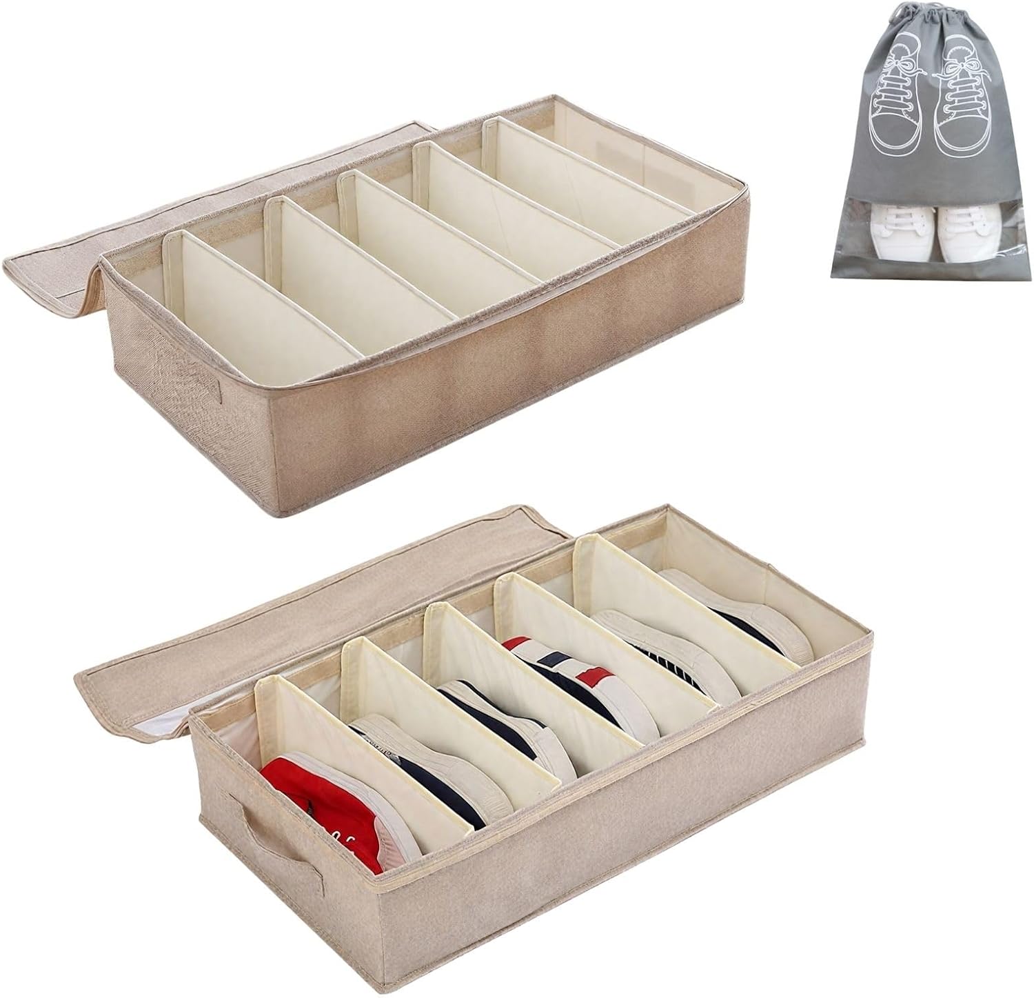 Product Name: Foldable Multifunctional Shoe Storage BoxMaterial: Non-woven fabricAre your shoes always a mess and you have nowhere to put them? This shoe storage box will save you from your "shoe shortage" troubles! Whether it's everyday sneakers, exquisite high heels, or boots, it can be stored in it. With a transparent window, you don't have to rummage through boxes and cabinets when looking for shoes. You can lock the target at a glanceDimensions: 60 x 33 x 14 cm / 23.6 x 13 x 5.5 inFolds when not in use for easy storageUse1. Mainly used to store various shoes, such as sneakers, sandals, boots, etc.2. Can be used to store clothes and thin blankets3. Suitable for bedroom or living room storageFeatures1. Large Capacity: Each shoe rack can hold up to 16 pairs of shoes2. Versatile Use: Suitable for wardrobes, bedrooms, storage rooms, and walk-in closets3. Sturdy and Durable: Double-layered fabric, strong stitching, and reinforced handles4. Portable: Comes with a handle for easy carrying5. Transparent lid: Easily find items and prevents dust accumulation