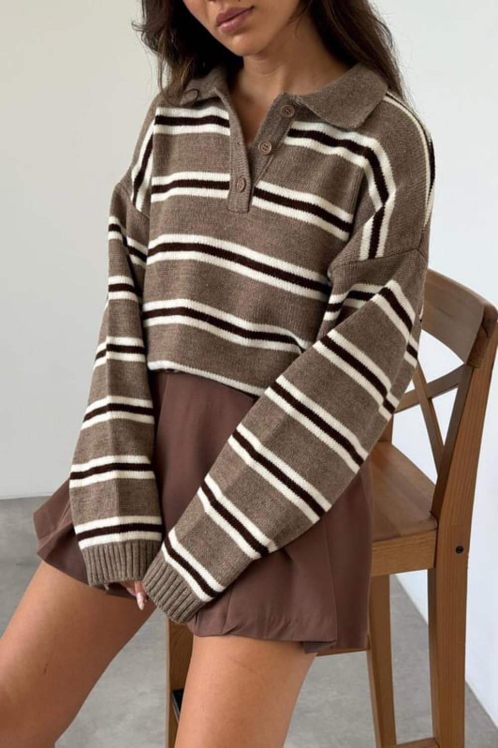 Loose Fit: Polo knit sweater women, with a loose fit, ensuring a comfortable and flattering silhouette, making you feel confident and fabulous all day long
