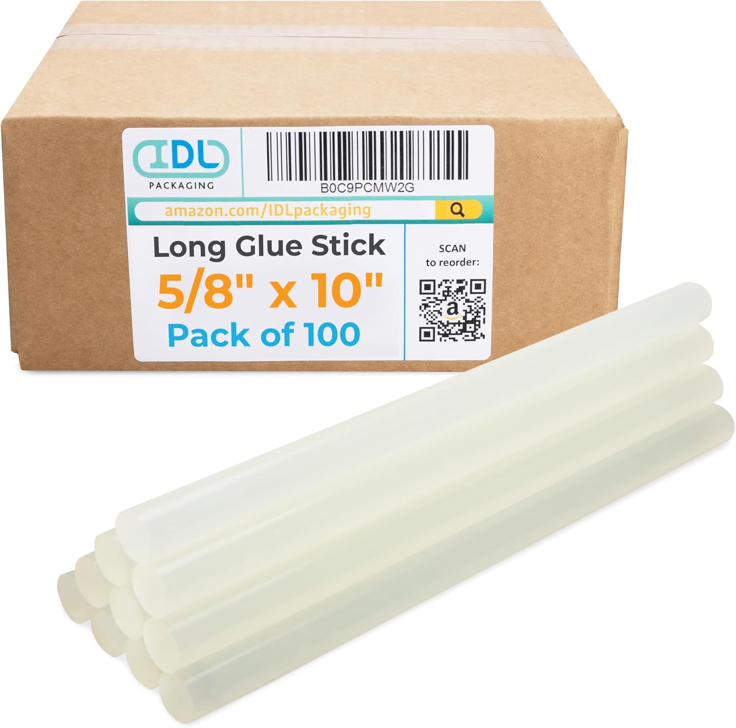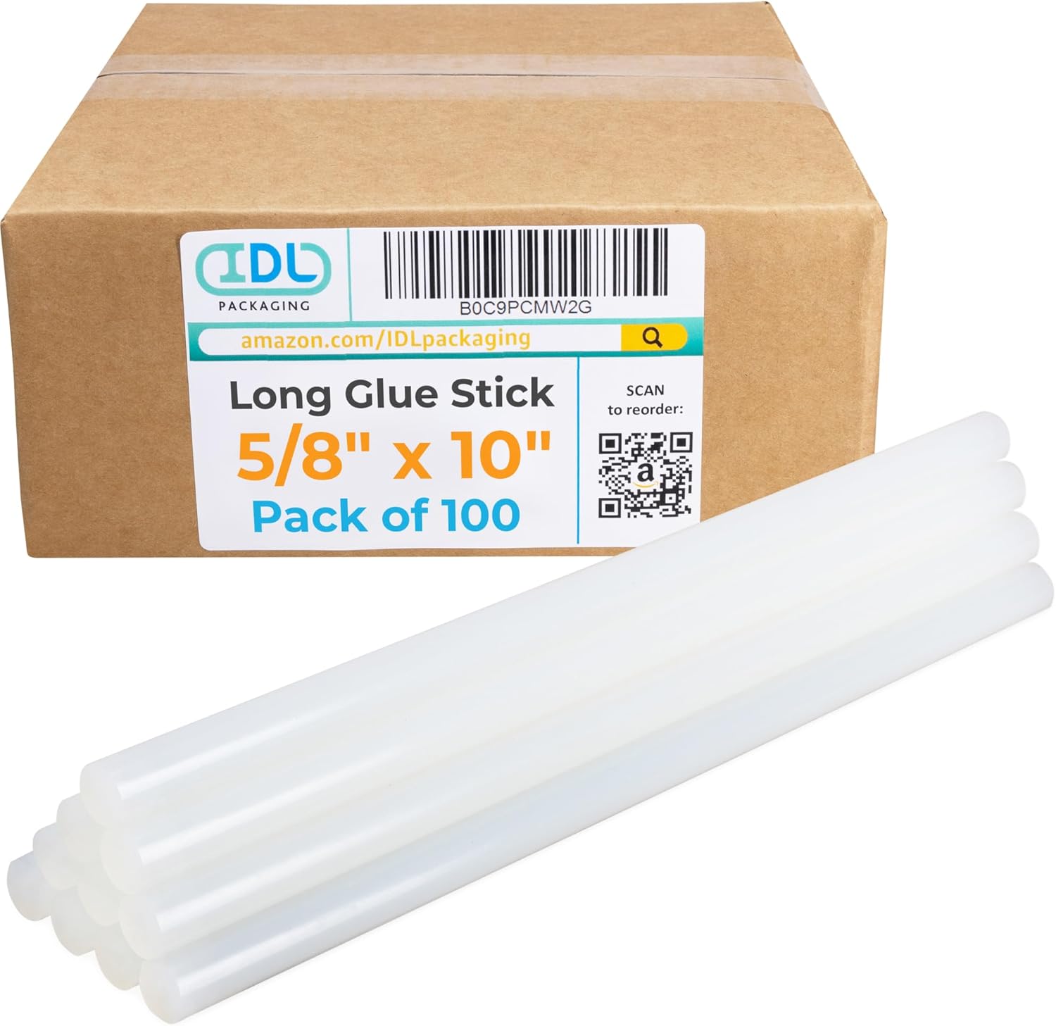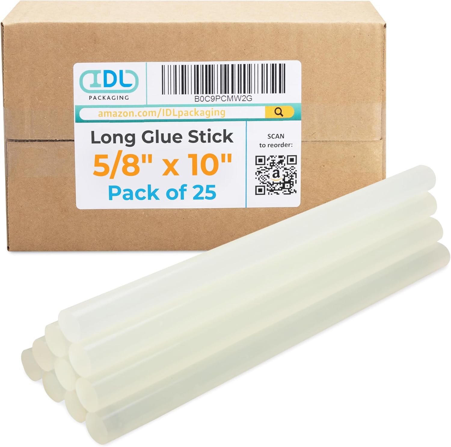 IDL Packaging Extra Large Glue Sticks for Glue Gun Full Size is 5/8-inch (15mm) in diameter and 10-inches long. They are designed with the industry standards to fit all full-size hot glue guns. Feature a 1,200 cps viscosity and 340°- 375° F application temperature. Pack of 25. With a melting point of 235°F, our hot glue sticks provide a strong adhesive, ensuring your packages remain securely sealed even under extreme temperatures. The adhesive's strength guarantees reliable protection for your items during transportation, preventing unsealing issues. These glue sticks are perfect for corrugated and packaging applications, featuring a fast-set adhesive. They offer quick and secure adhesion for paper-to-paper and corrugated-to-corrugated materials. IDL Packaging glue sticks for hot glue guns are engineered for high-speed hand gluing operations; they dry rapidly, enhancing productivity. For optimal performance, we recommend using these 5/8-inch craft glue sticks with our IDL Packaging GG-5800 Industrial 450W Full Size Hot Glue Gun, an excellent choice for a wide range of applications, including heavy-duty tasks in construction, carpentry, and repairs.