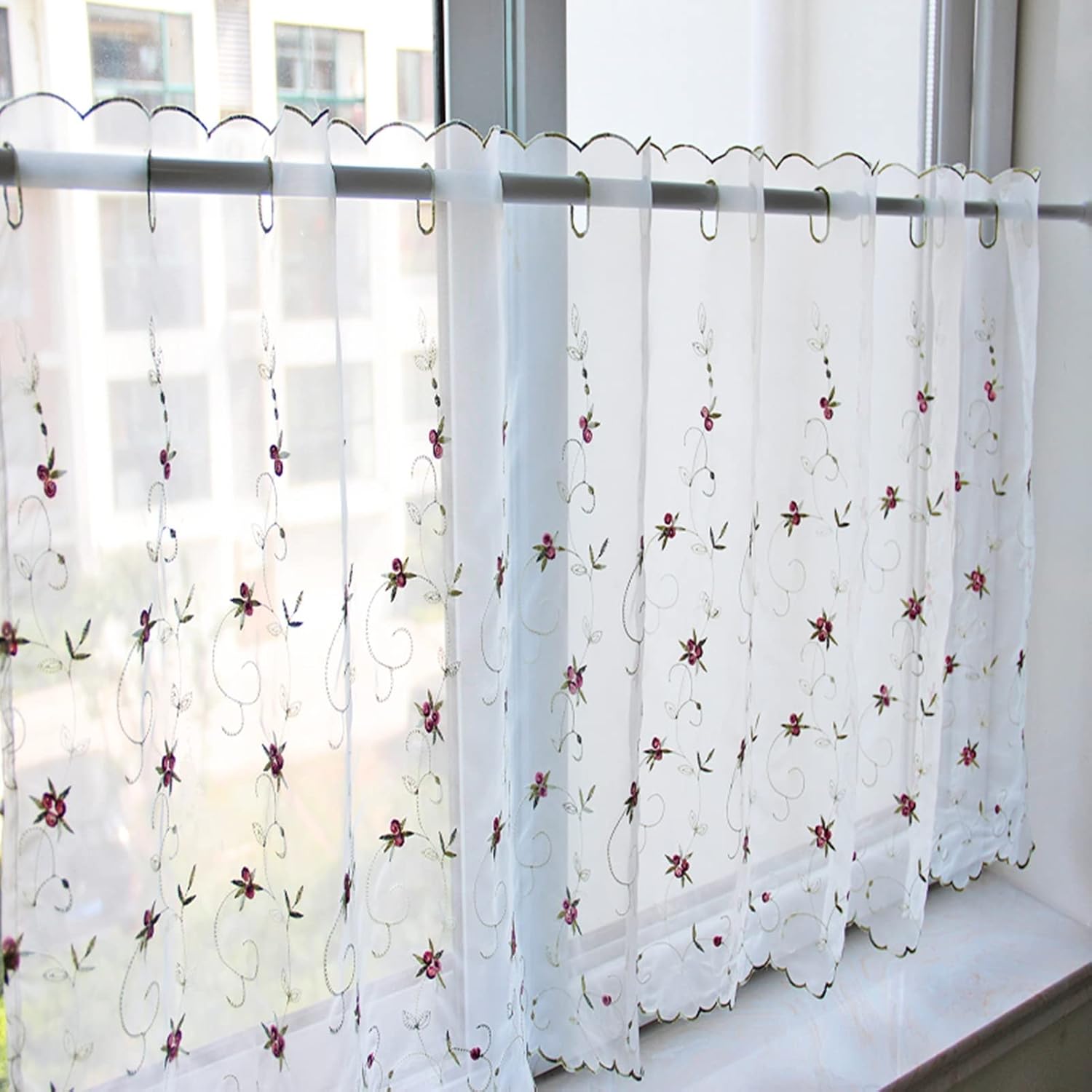 ✿✿✿ Decorate your home! ✿✿✿✿ Decorative floral pattern, chic and beautiful. Make dull windows look beautiful and complete the overall look of your room. It also reduces glare and heat from sunlight through windows, adding comfort to your home.✿ Specifications* Product Name: Embroidered Half Curtain* Color: white* Material: Polyester, Polyester cotton* Product size (WxH): W145xH42cm/57x16.5in , W145xH56cm/57x22in , W145xH85cm/57x33.4in , W175xH42cm/68.8x16.5in , W175xH56cm/68.8x22in , W175xH85cm/68.8x33.4in , W230xH42cm/90.5x16.5in , W230xH56cm/90.5x22in , W230xH85cm/90.5x33.4in* Use place: Cabinet, small window, cupboard.* Installation: Rod access* Care instructions: Machine washable at 40℃ or below* The package includes: 1 short curtain (not including the rod)✿ Tips1. The price is for 1 piece of curtain. The size is the size of 1 piece of curtain2. the fabric has natural elasticity, handmade products size error bottom 2cm is normal.3. For proper padding, the panel should be 1.5 to 2.5 times the width of your window (for example: if you have a 100cm wide window, we suggest you buy 2 curtains with a width of 100cm.)